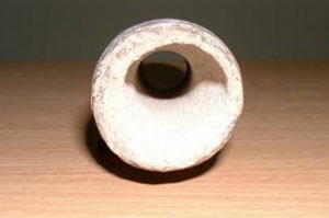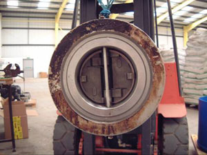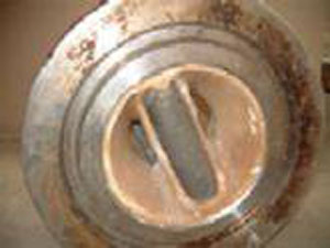 Pictures above show a large valve with a thick build up of scale, which the customer found very difficult to clean. The picture on the right shows the valve after a 24hr soak in Descale, and the removal of the scale.
