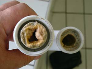 The picture on the left shows build up of organic waste within grey/black water lines prior to using product. Descale was introduced to system initially on a weekly basis and the picture on the right shows clear lines when inspected 4 month later. The lines are kept clear by the continued fortnightly maintenance dosing schedule.